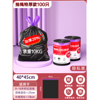 首页 > 日用品 > 抽绳垃圾袋家用手提式加厚免撕厨房卫生间大号塑料袋子实惠装特厚